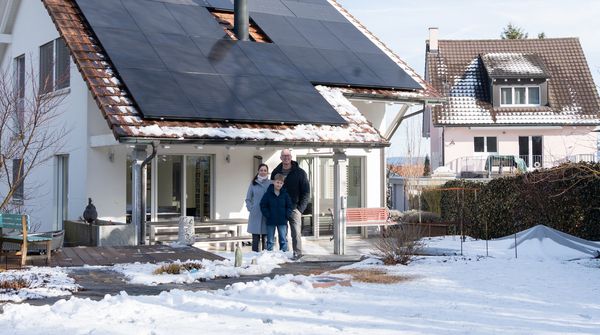 Familie Weber ist vollelektrisch unterwegs. Es wird elektrisch geheizt und Auto gefahren. Obenstehende Tabelle zeigt: Ein Haushalt wie jener der Familie Weber verbraucht schätzungsweise dreimal mehr Strom im Jahr als das durchschnittliche, nicht-elektrifizierte drei Personen-Einfamilienhaus. Je mehr die Gebäudetechnik und die Mobilität bei einem Zuhause elektrifiziert werden, umso mehr lohnt es sich den eigenen Solarstrom direkt vor Ort zu nutzen – zum Beispiel um die Wärmepumpe und die E-Auto-Ladestation zu betreiben.
