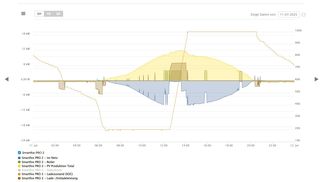 Genau. An sonnigen Mittagen kann es sein, dass trotz allen Vorkehrungen, unsere Solaranlage mehr Strom produziert als sämtliche Verbraucher, die mit der Anlage verbunden sind, verbrauchen können.